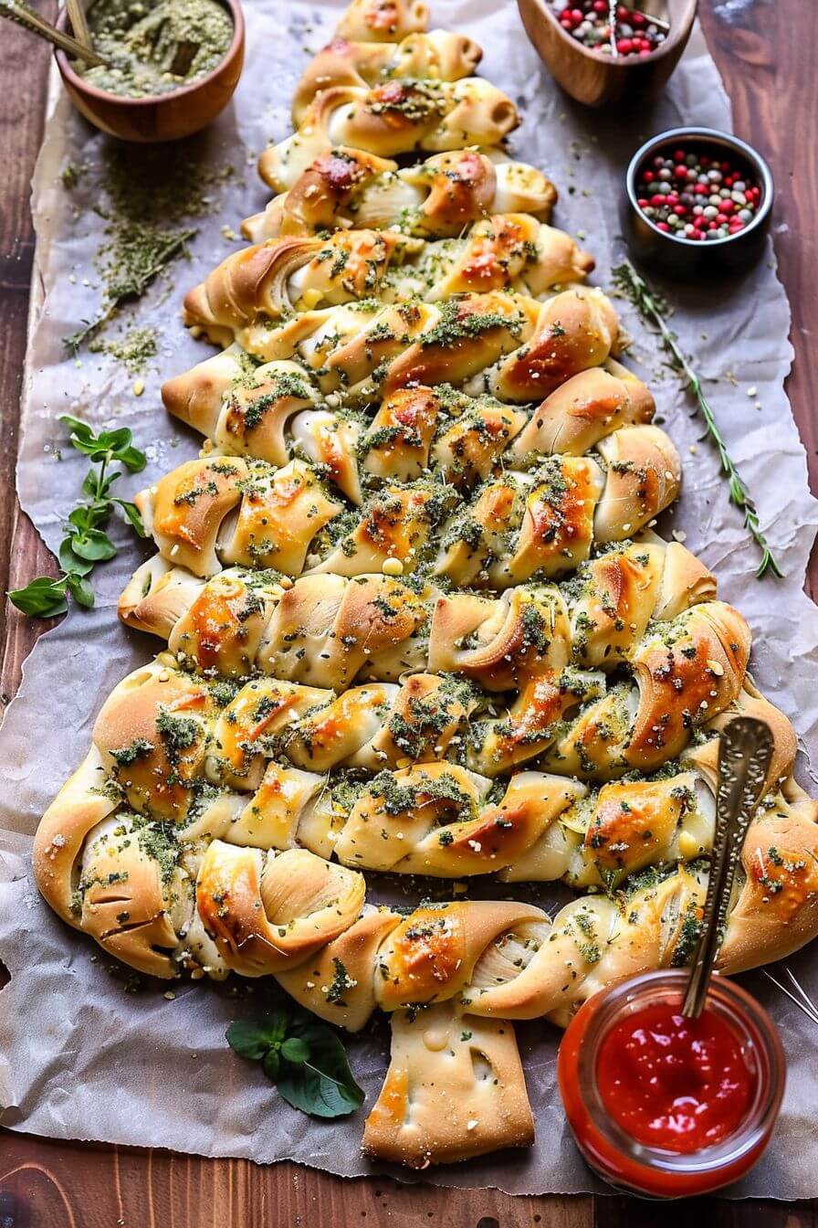 This Christmas Tree Garlic Bread Pull-Apart brings together visual charm and comforting flavor in a way that feels festive without being complicated. The process is straightforward, the ingredients are familiar, and the result is both impressive and approachable.