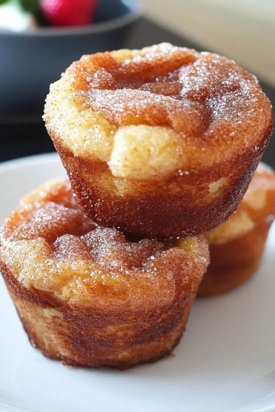 -In a shallow dish, mix together 1/2 cup granulated sugar and 1 tablespoon ground cinnamon. While the muffins are still warm, dip the tops into the cinnamon sugar mixture, pressing gently to ensure it adheres well.