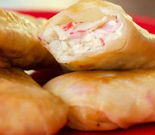 -Use a small amount of water to secure the tip of the wrapper. (If you don’t know how to roll an egg roll it usually shows on the package with pictures).