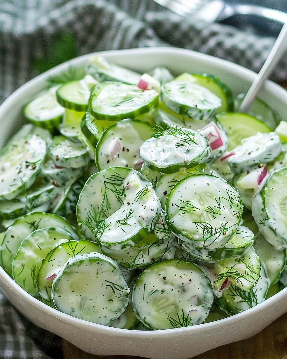 This Creamy Cucumber Salad proves that simple ingredients, when handled thoughtfully, can deliver a dish that feels balanced, refreshing, and quietly satisfying. With minimal prep and flexible components, it fits easily into everyday meals while still holding its own on a larger table.