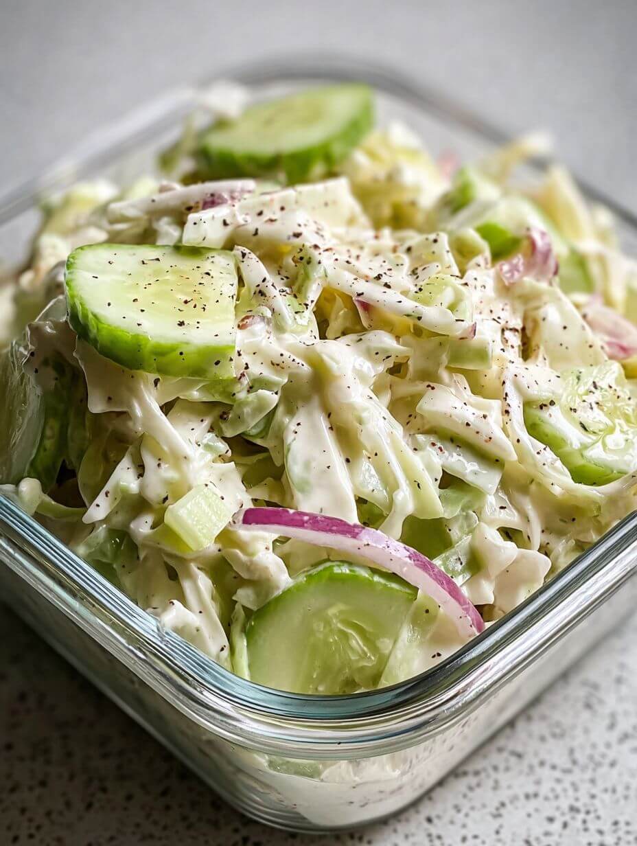 Creamy Peppery Coleslaw with Cucumbers and Celery
