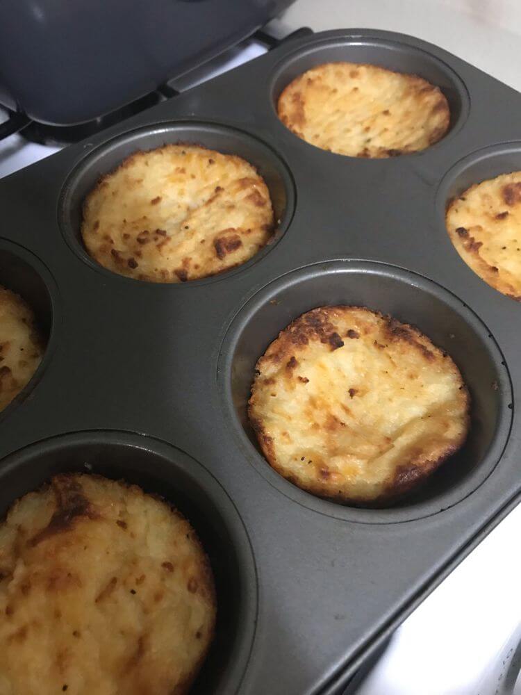-Mix the mashed potatoes with butter and any additional ingredient you choose and stuff it into a greased muffin tin.